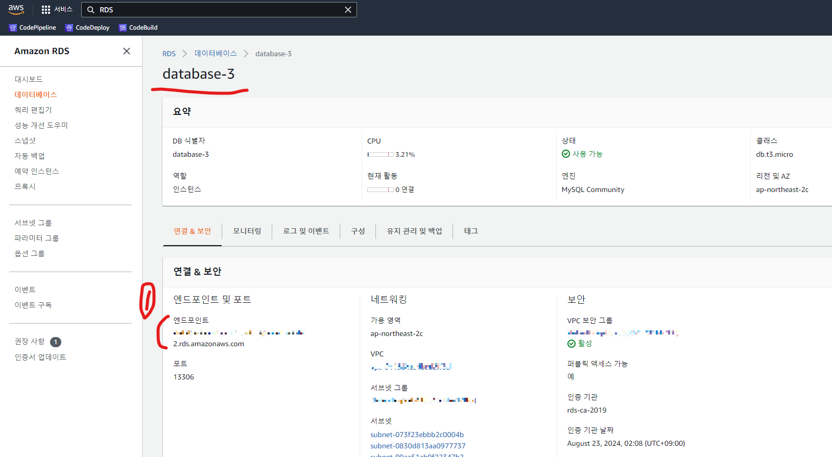 6. 생성된 데이터베이스 엔드포인트 가져오기