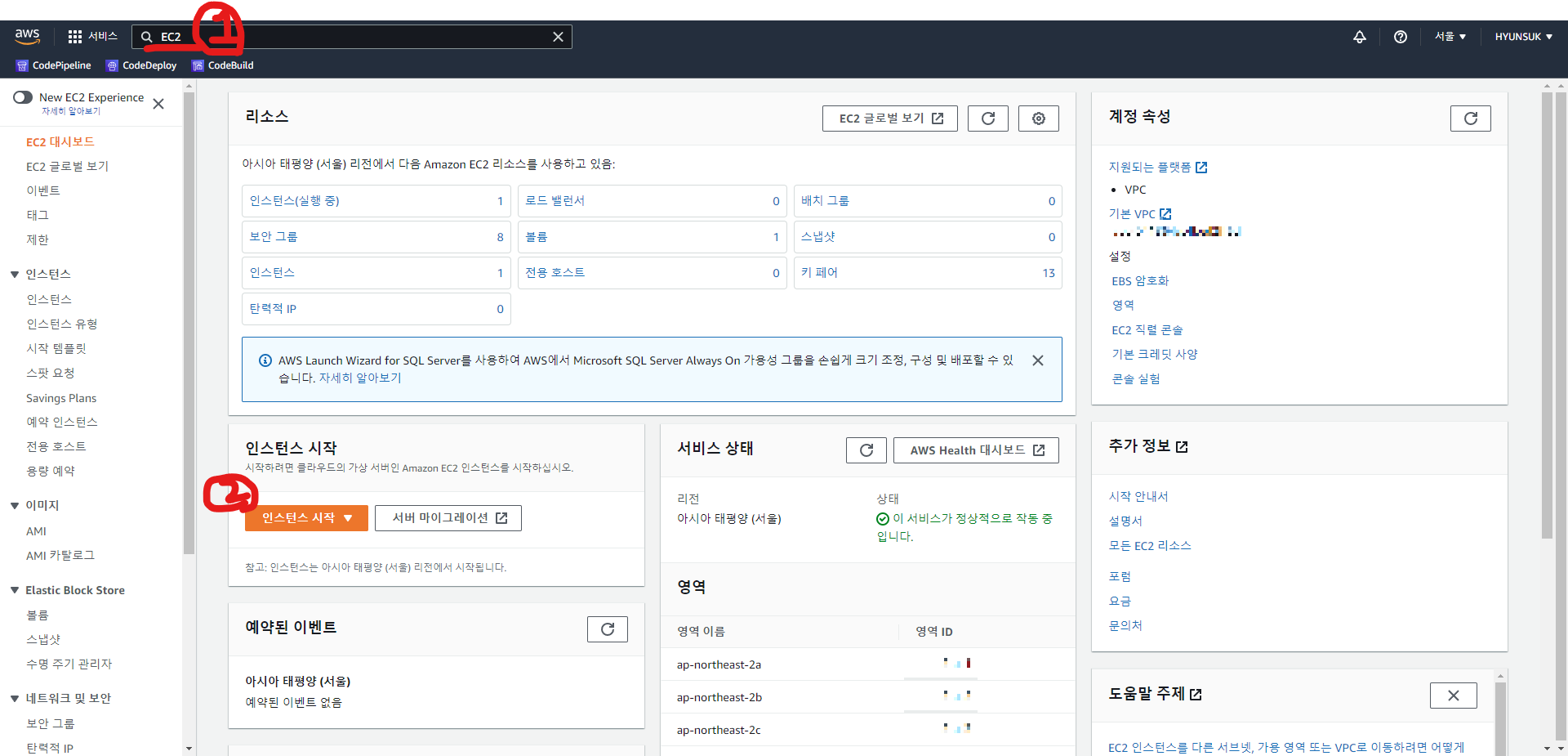 1-0 오른쪽 위에 서울 리전인지 꼭 확인하기