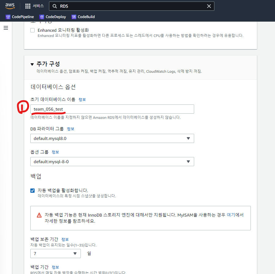 5-1. 이름을 지정하지 않으면 RDS에서 데이터베이스를 생성하지 않음