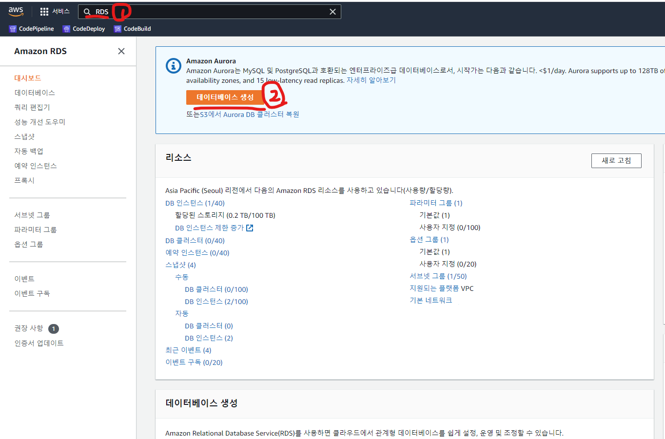 1. AWS로그인 후 RDS 시작하기