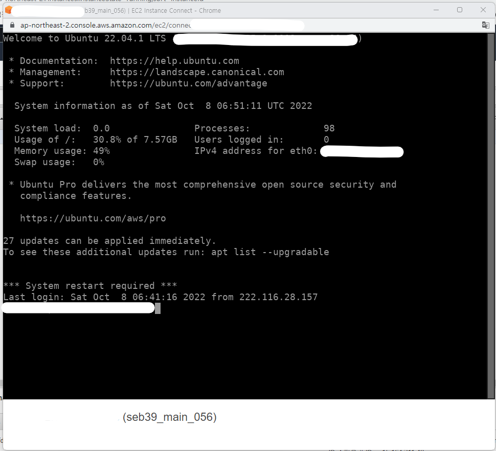 매우 중요한 내용이라 급하게 추가 합니다. 처음 배포하면 바로 인스턴스 생성하고 쭉쭉 진행하지만 나중에 확인 해 보면 오른쪽 위의 '서울'리전 이 아닌 미국 어딘가로 선택되어 있는 경우가 있는데 이러면 물리적으로 멀리 떨 어진 곳에서 컴퓨터를 빌려오기 때문에 속도 측면에서 안 좋다.
