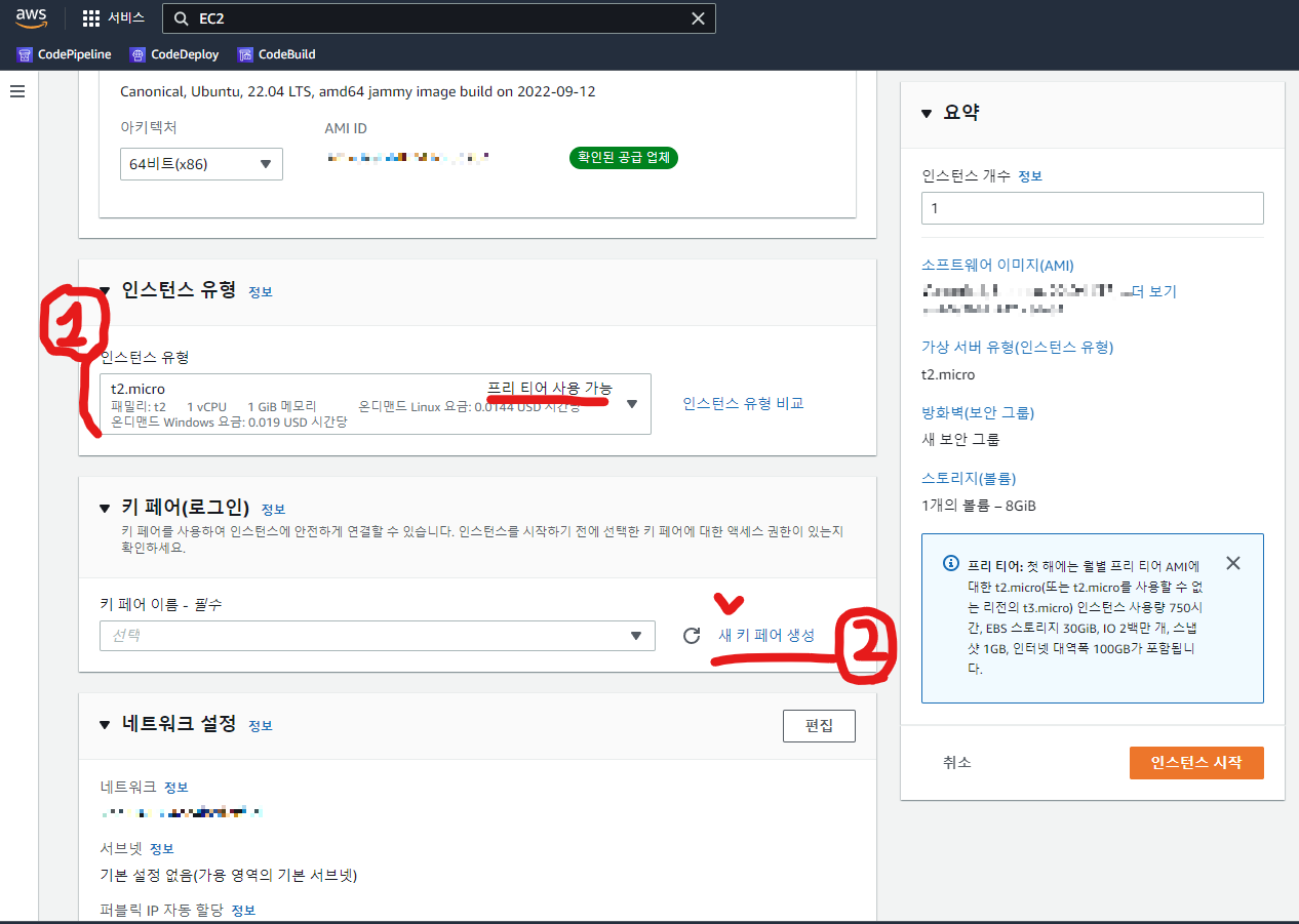 3. 인스턴스 유형 선택, 키페어 생성